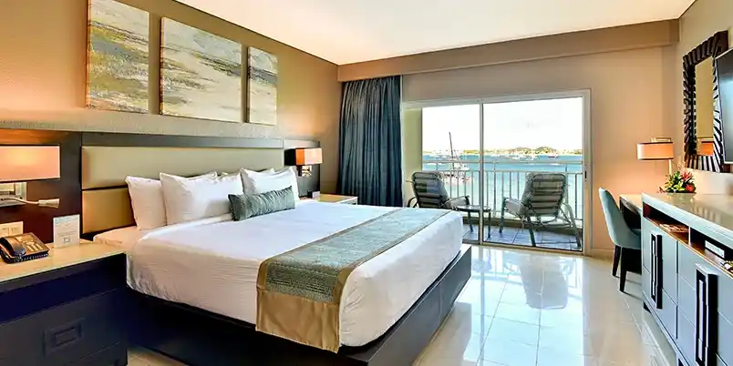 spacious and comfortable stay with stunning views of the Caribbean Sea and the resort's marina. The