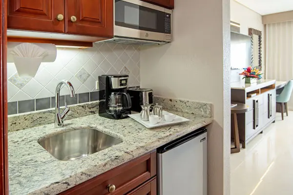 - Kitchenette in the second bedroom with appliances such as a mini bar, coffee/tea maker and a microwave
